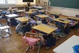 4月15日(水)に、雨で延期になっていた避難訓練を行いました。本校では、子供たちの命を守るために、1学期に地震想定、2学期に火災想定、3学期に不審者対応等の想定で避難訓練を実施しています。今回は地震想定でしたが、同時に基本的な避難の仕方や避難経路を確認することも目当てとして行いました。 災害や事故から身を守る技能や知識を、繰り返し繰り返し指導していきます。