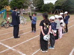4月17日(金)に旭警察署や市役所、交通安全協会の方々を招き、3年生を対象とした自転車教室を開催しました。グラウンドに模擬道路をつくり、自転車の安全な乗り方について指導を受けました。 子供たちは、自転車の整備の仕方や自転車に関する交通ルールを教えていただいた後、模擬道路をつかい、安全な乗り方について体験的に学びました。 今後も自分の身の守り方について、学習する機会をつくっていきます。