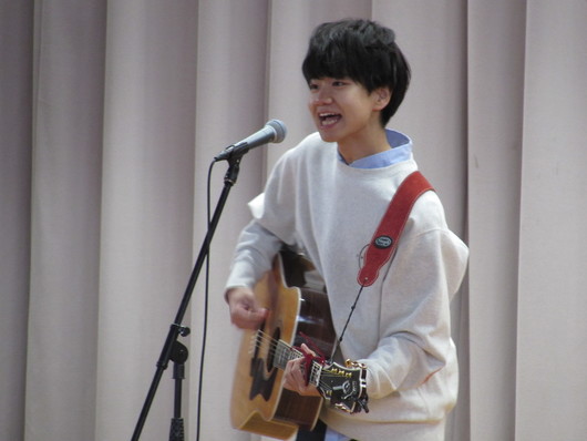12月3日に職業人と語る会を実施しました。今回、講師に谷川晃煕さんをお招きし「郷土を愛し、夢を持って歩み続けるには」というテーマで歌を交えてのご講演をいただきました。