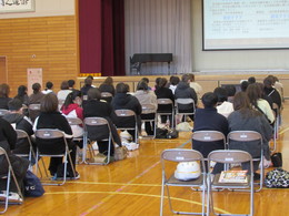 本校では1月29日、令和8年度入学予定児童・保護者の皆さまを対象とした新入生説明会を開催しました。 当日は寒い中、多くの皆さまにご来校いただき、会場はこれから始まる学校生活への期待と緊張が入り混じった、温かな雰囲気に包まれていました。説明会では、まず校長より本校の学校概要についてお話しし、その後、生徒指導担当より学校生活のルールや安全面への取り組み、養護教諭による健康に関することなど、入学後の生活をイメージしやすい内容をお伝えしました。また、千葉県警察本部少年課北総地区少年センターと旭市教育委員会の方々を講師にお招きしSNS安全教室と部活動地域移行についてもお話しをしていただきました。