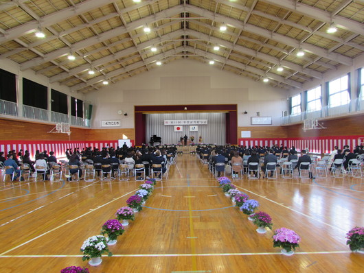 本日、令和7年度「第54回卒業証書授与式」を挙行いたしました。 厳粛な雰囲気の中、担任の呼名に元気よく応える卒業生の姿は、これまでの成長を感じさせる大変立派なものでした。証書を受け取る一人ひとりの瞳には、未来への希望が満ちあふれていました。 これまで本校の教育活動を温かく支えてくださった保護者の皆様、地域の皆様に心より感謝申し上げます。